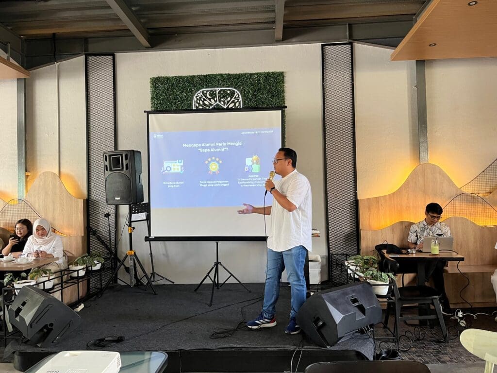 📌 Pemaparan Program Sapa Alumni oleh Bapak Ahmad Darajat Basallama, S.E., M.M, yang menjelaskan berbagai inisiatif kampus dalam menjalin komunikasi dan kolaborasi berkelanjutan dengan para alumni.